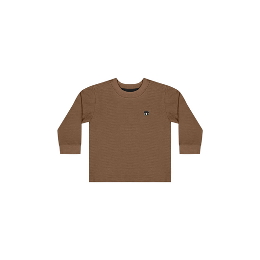 CAMISETA MANGA LONGA EM MALHA COLMEIA AZUL/MARROM