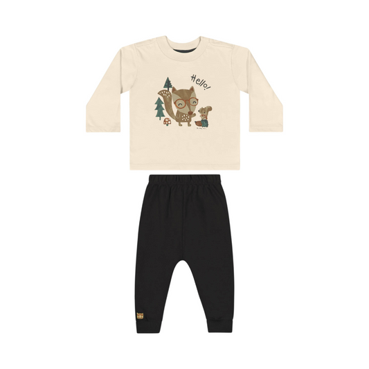 CONJUNTO CAMISETA MALHA E CALCA MOLETOM SEM FELPA