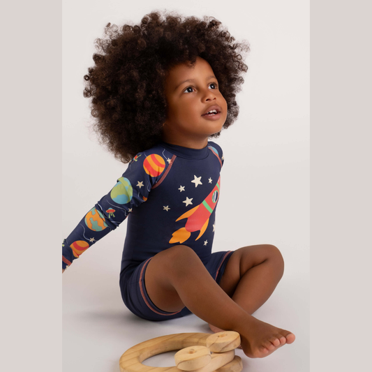 CONJUNTO CAMISETA COM PROTECAO SOLAR UV 50+ E SUNGA BOXER ESPACO DEDEKA (1 ao 3)