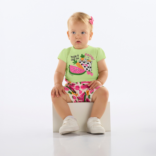 CONJUNTO BLUSA E SHORT EM COTTON VERDE LIMAO