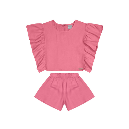 CONJUNTO BLUSA E SHORT EM VISCOSE ROSA DIANTHUS