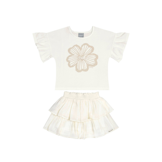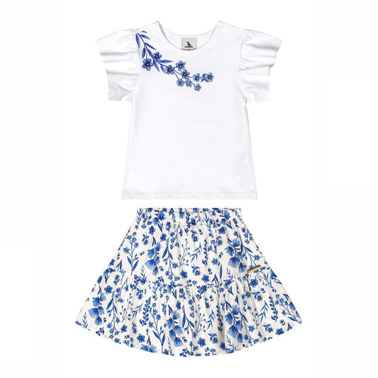 CONJUNTO BLUSA COTTON E SAIA TECIDO COM SHORT MALHA BRANCO