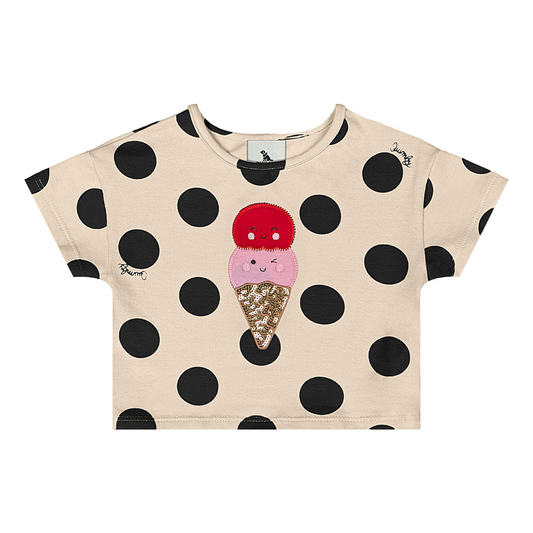 CONJUNTO BLUSA, SHORT E BABADOR EM RIBANA SUSTENTAVEL DIGITAL FLORES