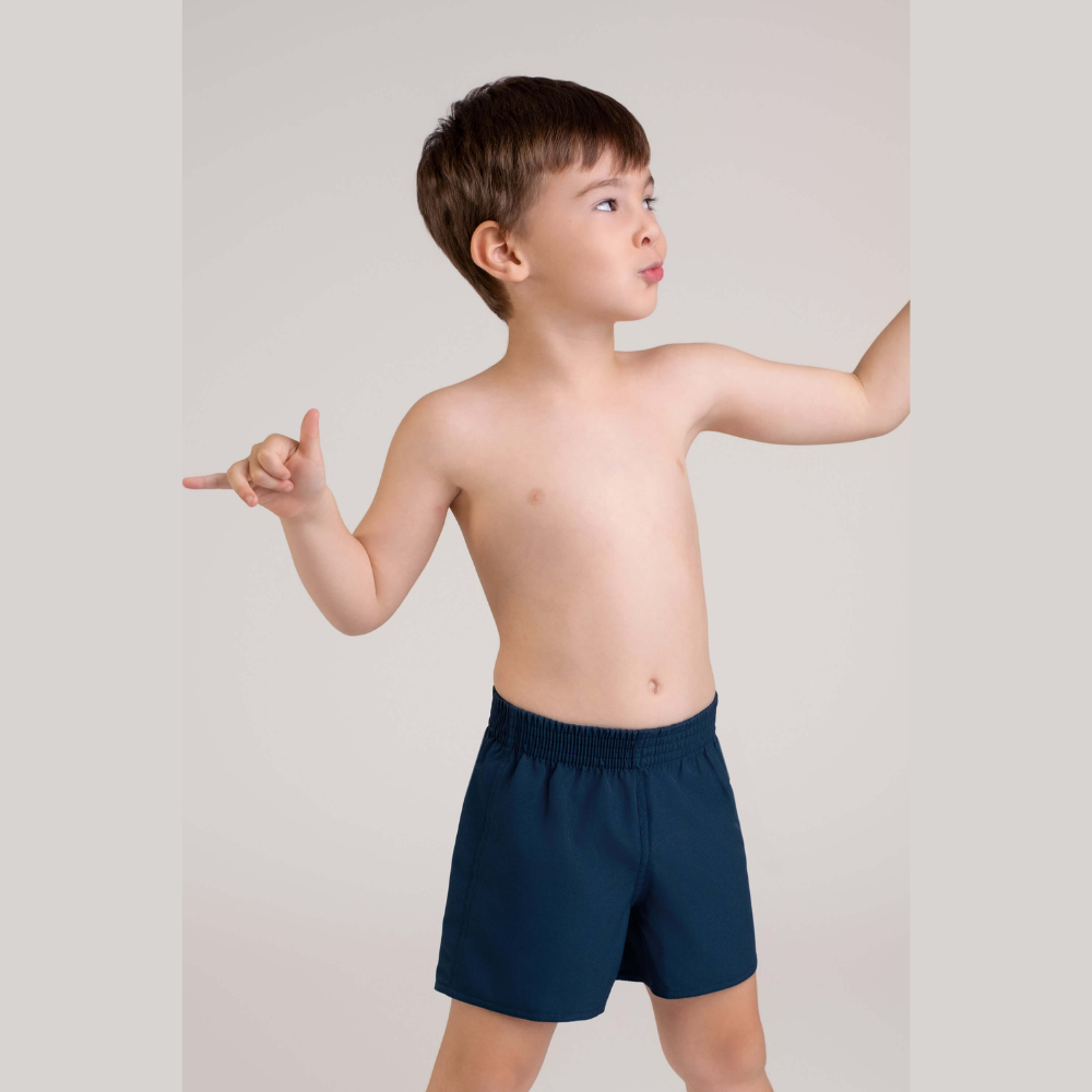 Calção infantil para meninos em microfibra. Cor preta/marinho e lisa, básica e combina com tudo. Secagem rápida, perfeito pra praia ou piscina. A modelagem da peça e o elastano no tecido permitem um melhor caimento, um toque mais leve e mais liberdade de movimento para os pequenos.