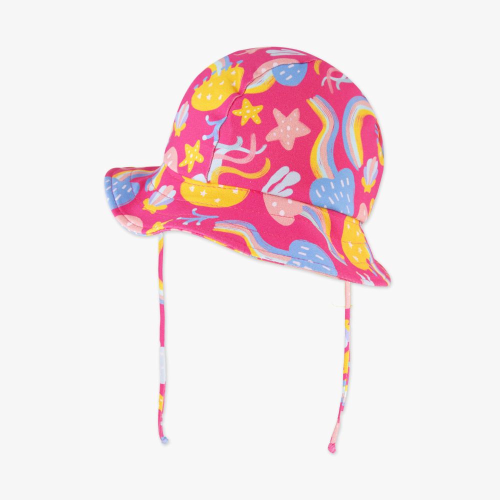 Proteção e estilo pro verão! Chapéu infantil estilo bucket com fator de proteção solar. Ideal para crianças de até 3 anos. Estampa de águas vivas super colorida. Conta com cordão para amarrar e é um item indispensável para os dias de sol!