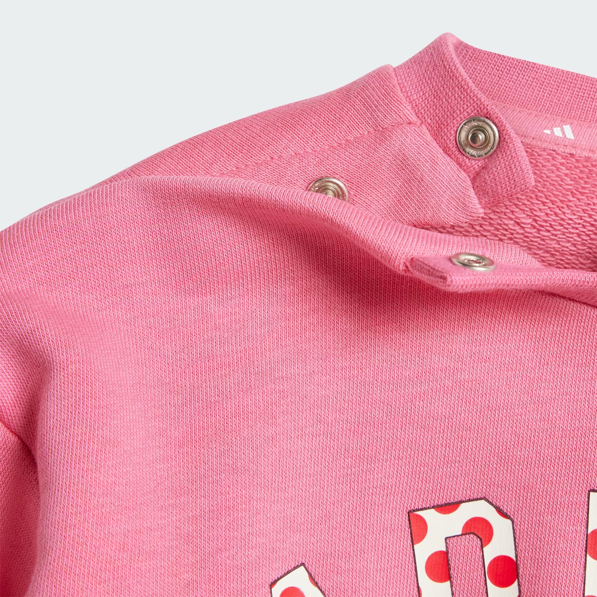 Este conjunto de moletom infantil da adidas, com bolinhas e detalhes em glitter, traz um toque de magia e diversão ao look da sua pequena. O moletinho macio mantém as pernas confortáveis enquanto as crianças engatinham e brincam. A amigável Minnie Mouse da Disney sorri na frente do moletom, pronta para entrar na diversão.